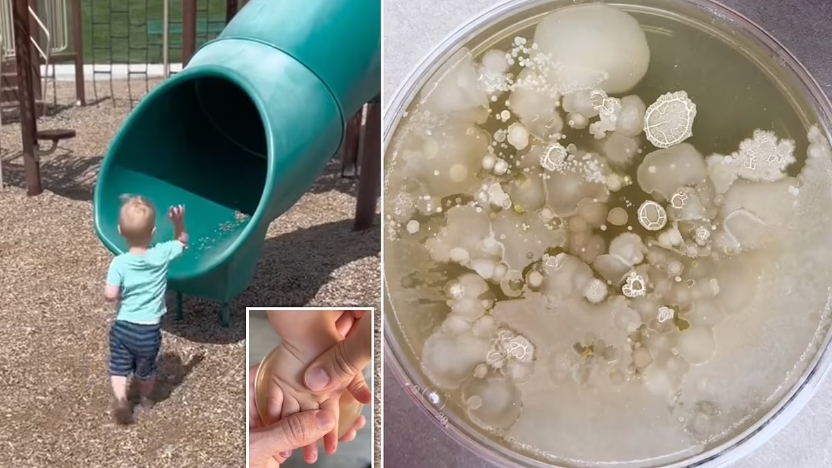 أظهر مقطع فيديو متداول تجارب عالم الأحياء الدقيقة الأمريكي تيم كول، التي تكشف مدى نظافة ملاعب الأطفال.