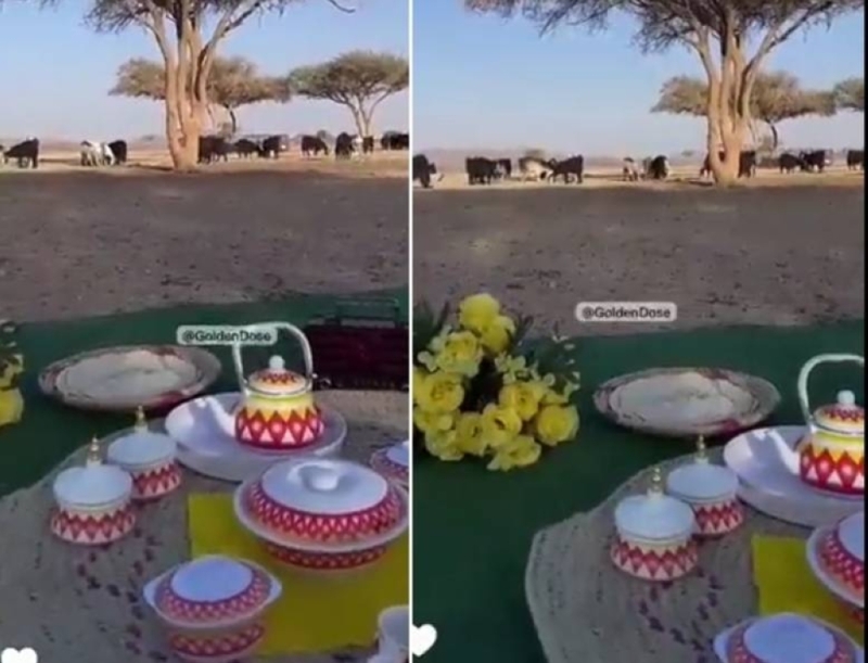 وأظهر الفيديو المتداول على مواقع التواصل الاجتماعي العروس وهي تستعد لإعداد وجبة الإفطار في الصباح، وأمامها الأغنام والماعز ترعى بين الأشجار في المرج.