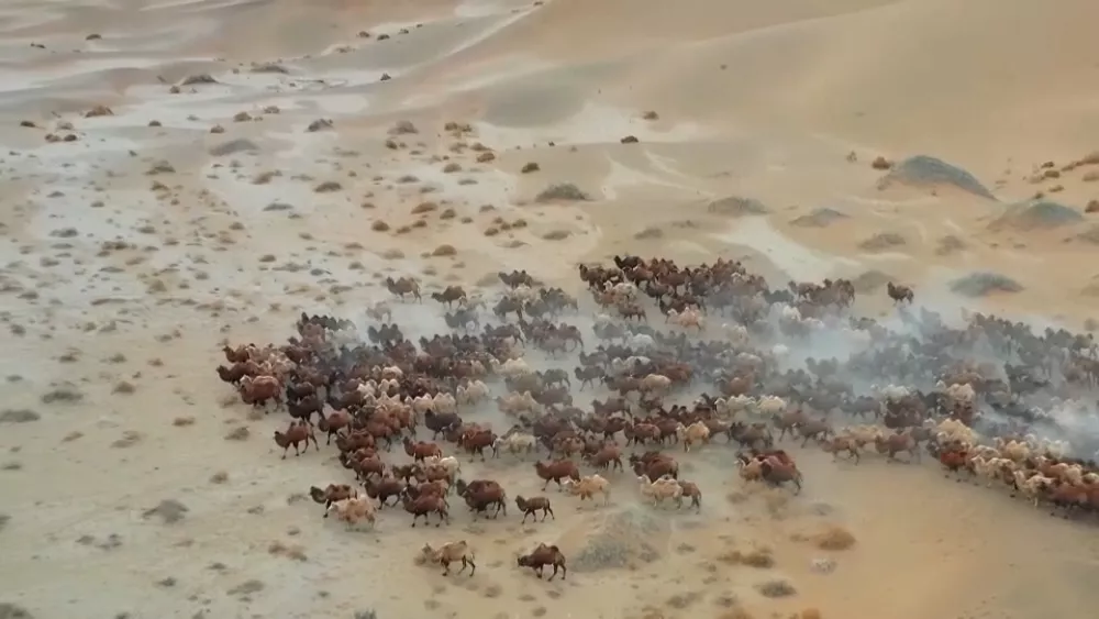 وتم نقل مئات الإبل إلى المراعي الشتوية في صحراء بادين جاران في منطقة أليكسا بمنطقة منغوليا ذاتية الحكم شمالي الصين. وفي فيديو رائع بثته قناة يورو نيوز عبر صفحتها على اليوتيوب، تظهر قطعان الإبل وهي تعبر الصحراء الشاسعة حتى تصل إلى المناطق العشبية.