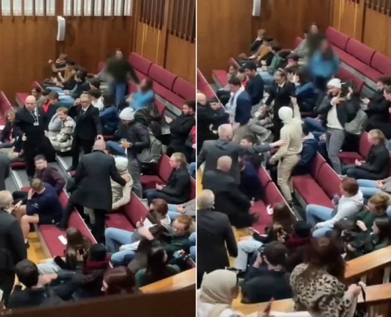 انتشر على مواقع التواصل الاجتماعي مقطع فيديو يوثق مشاجرة بين طالب مسلم وطالب يهودي داخل إحدى قاعات جامعة دبلن الأيرلندية.