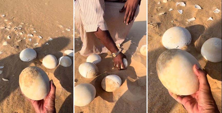 وثق مقطع فيديو عثور بعض الأشخاص على بيض النعام في صحراء الربع الخالي في مفارقة غريبة من نوعها.