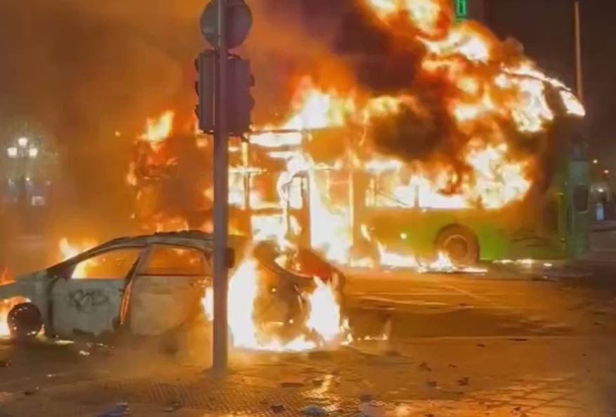 شاهد فوضى وأعمال شغب وحرق المركبات في العاصمة الأيرلندية بسبب طعن مهاجر عربي لـ 3 أطفال,