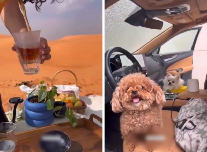 وظهر في الفيديو، أن الفتاة كانت تحضر أغراضها في السيارة، ثم اتجهت إلى البر، حيث نزلت من السيارة وبدأت بتجهيز المكان للكشتة، من خلال نصب مقعد والطعام والمشروبات.
