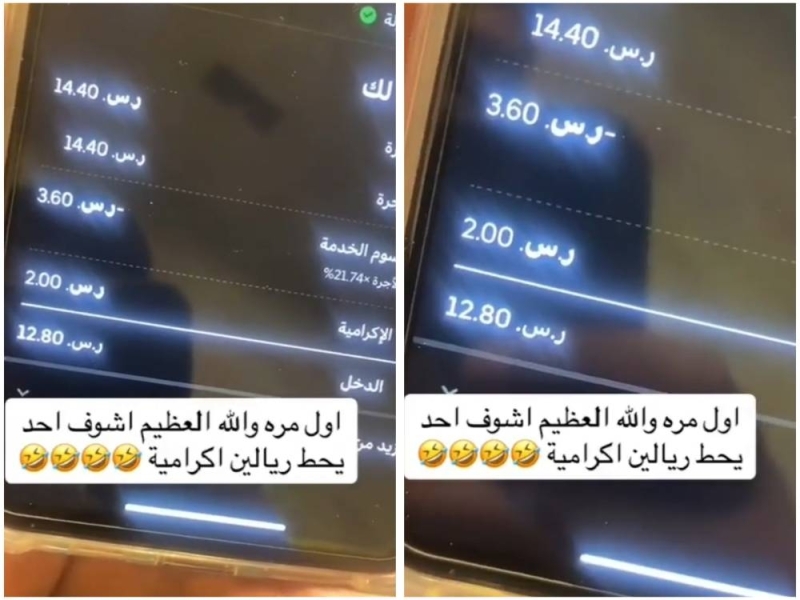 وقال سائق التوصيل في الفيديو: “هذه هي المرة الأولى التي أرى فيها شخصًا يعطي ريالين إكرامية. هذا بخيل حقيقي.”