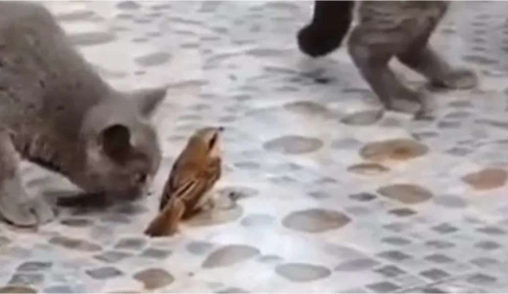 شاهد عصفور يهرب بحيلة لا تصدق من مجموعة قطط,