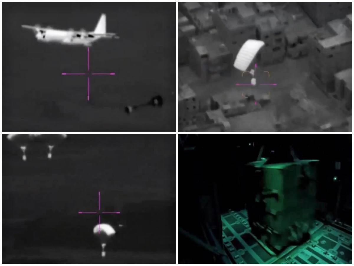 ويظهر مقطع فيديو نشره الجيش الإسرائيلي طائرة نقل من طراز C-130J تابعة للسرب 103 في سلاح الجو الإسرائيلي وهي تقوم بإسقاط معدات.