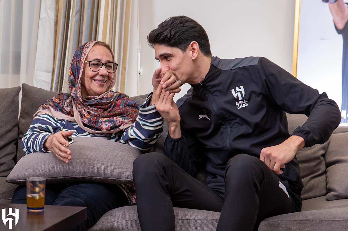 احتفل حارس مرمى نادي الهلال المغربي ياسين بونو مع والدته بحصوله على جائزة أفضل حارس مرمى في القارة الأفريقية لعام 2023، في حفل الاتحاد الأفريقي لكرة القدم.