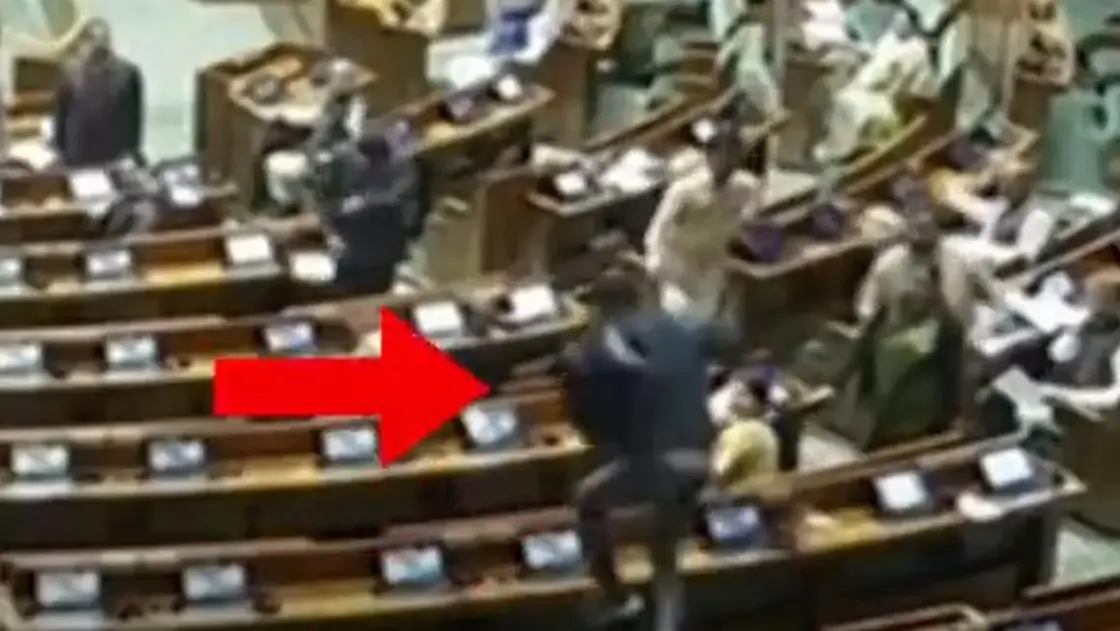 شاهد رجل يقفز فجأة إلى منطقة النواب بالبرلمان الهندي,