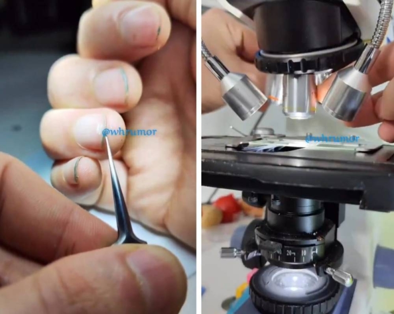 وظهر في الفيديو أحد الباحثين وهو يحمل ما وجده تحت الأظافر، ويضع هذا الشيء تحت المجهر.