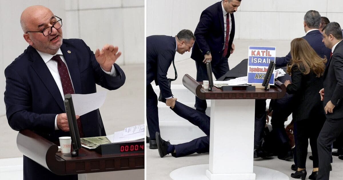 أظهرت لقطات فيديو من البرلمان التركي النائب حسن بيتماز (53 عاما) وهو ينهار بعد أن ألقى كلمة مدتها 22 دقيقة انتقد فيها علاقة حزب العدالة والتنمية الحاكم بإسرائيل.