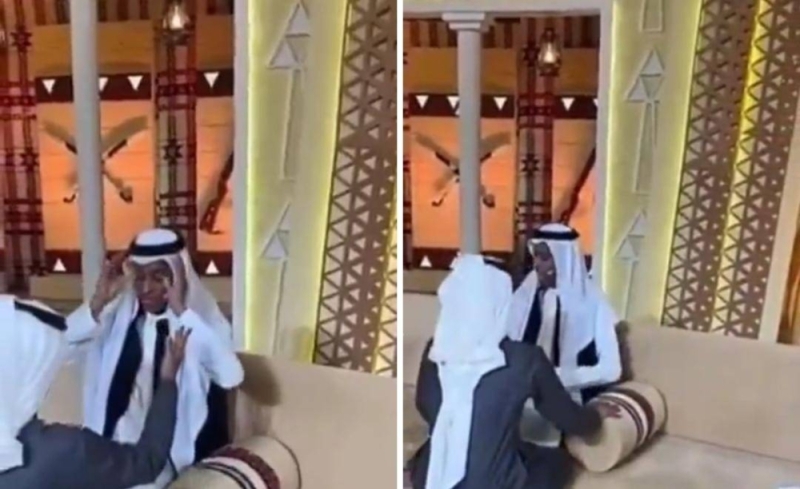 وأظهر الفيديو قايد جالسا في الاستوديو مرتديا الزي السعودي التقليدي، فيما جلس السكرتير أمامه وتحدث معه في أمر ما، ثم غادر المكان.