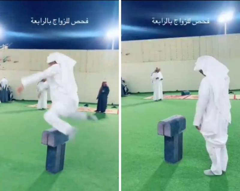وثق مقطع فيديو متداول مجموعة من الرجال يقومون بتحدي غريب للتأكد من قدرتهم على تحمل مسؤولية الزواج من زوجة ثانية.
