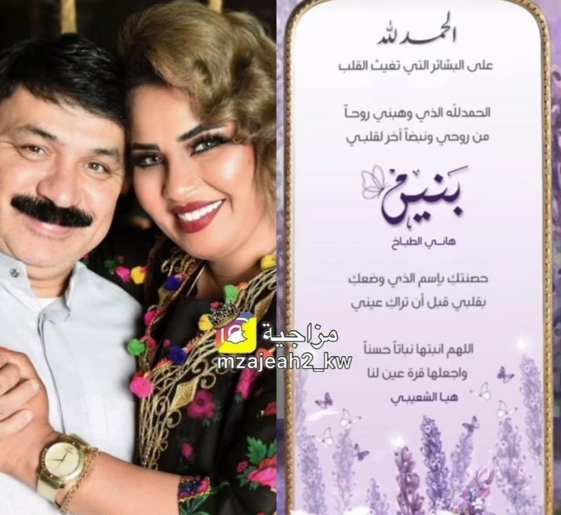 أعلنت الفنانة الكويتية هيا الشعيبي، عن استقبالها مولودتها الخامسة، وهي طفلة أطلقت عليها اسم “أولاد هاني الطباخ”.