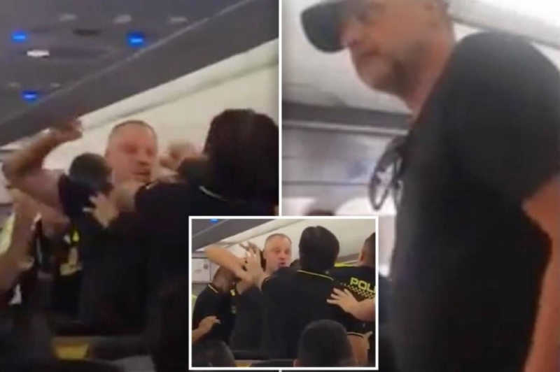 شاهد راكب يعتدي على الشرطة الأمريكية أثناء القبض عليه على متن طائرة متجهة إلى فلوريدا,