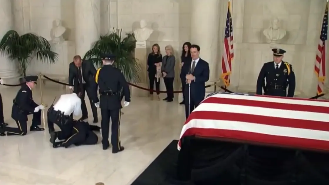تداول رواد مواقع التواصل الاجتماعي مقطع فيديو مؤثر يظهر حرس الشرف وهو ينهار أمام نعش القاضية ساندرا داي أوكونور، أول امرأة تنضم إلى المحكمة العليا الأمريكية.