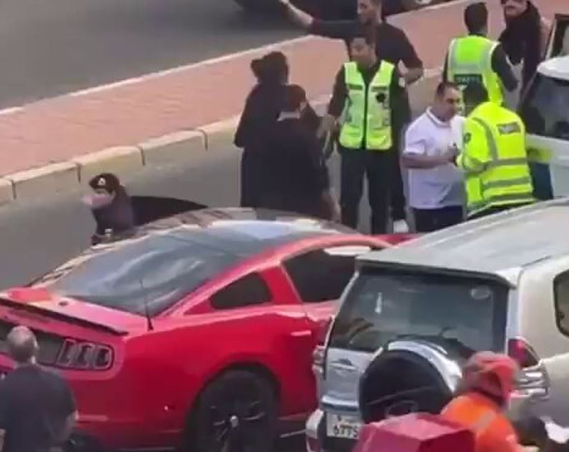 وتفصيلاً، يظهر الفيديو الشرطة الكويتية وهي توقف سيارة حمراء كان يستقلها شاب وامرأة. وبينما كانت المرأة غاضبة من رجال الأمن، قامت بصفعة أحدهم بعنف. وأثار ذلك غضب رجل الأمن الذي رد بصفعة أخرى على المرأة. وبعد ذلك نشبت مشاجرة عنيفة بين الشاب ورجل الأمن، حيث قام الشاب بضرب رجل الأمن. وحاول رجال الأمن الآخرون فض الشجار وإبعاد الشاب عن زميلهم، لكن الشاب خلع قميصه وقفز فوق السيارة مرة أخرى ليواصل ضرب رجل الأمن.