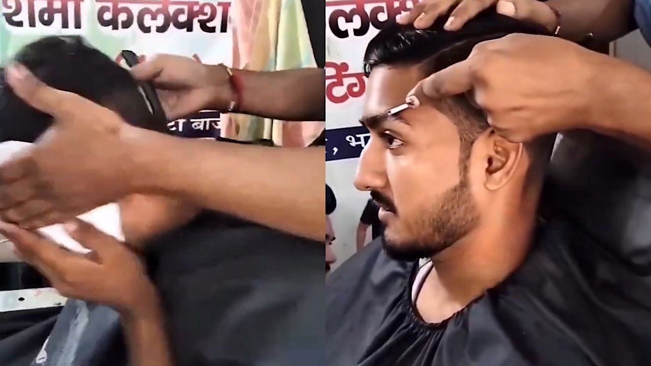شاهد حلاق هندي يتسبب في جرح عميق لزبون وهو يقوم بالاستعراض,