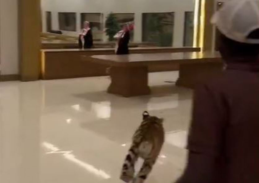 انتشر على مواقع التواصل الاجتماعي مقطع فيديو يظهر شخصا يطلق النار على نمر ضخم على صديقه داخل قصره، فيما شاهد شخصان آخران. ويظهر في الفيديو الشاب وهو يركض داخل القصر ويتبعه النمر، فيما يتابع شخصان آخران الوضع. ولم يتضح ما حدث بعد ذلك، بحسب المقطع المتداول.