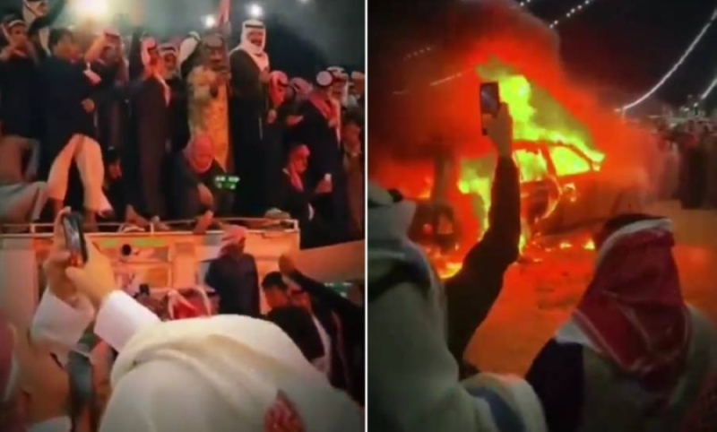 شاهد احتراق مركبة وسط حفل باشات شمر بمهرجان الصياهد في ظروف غامضة,