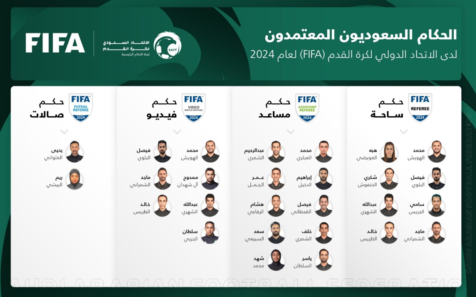 الإعلان عن أسماء الحكام السعوديون السيدات والرجال المعتمدون لدى الفيفا لعام 2024,