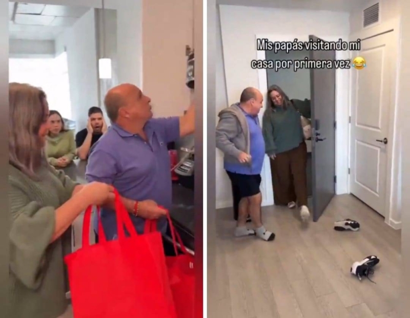 وثق مقطع فيديو، أباً وأماً يقومان بعمل ساخر داخل منزل ابنهما وزوجته، لتذكيره بما كان يفعله عندما كان طفلاً ومراهقاً.