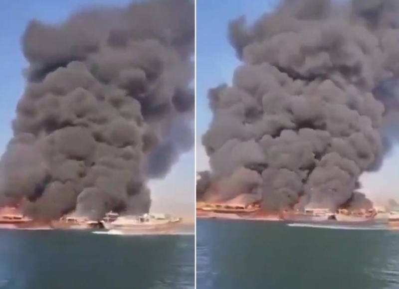 وأظهرت مقاطع فيديو متداولة على مواقع التواصل الاجتماعي، عدة سفن مشتعلة، ودخان كثيف يتصاعد من المكان.