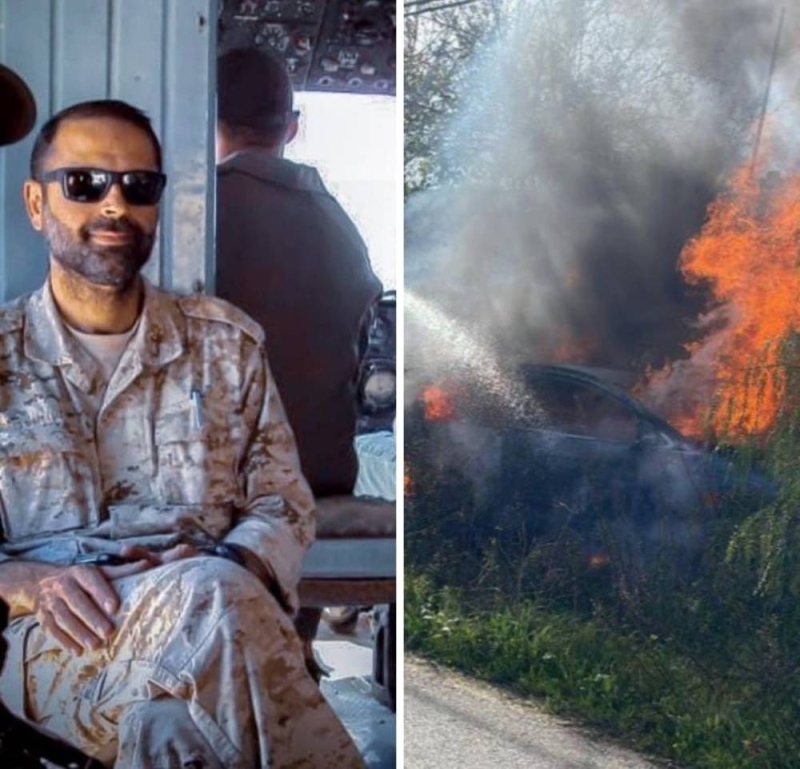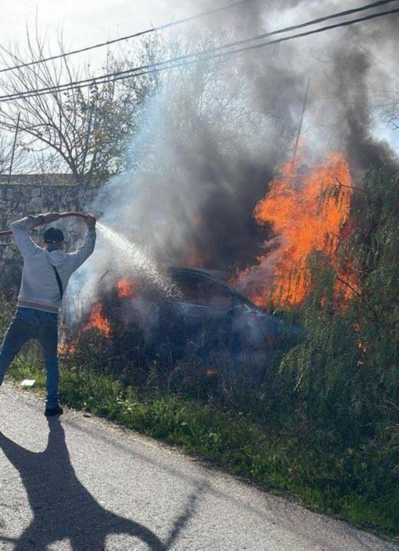 وأظهرت لقطات مصورة احتراق سيارة الزعيم نتيجة القصف.