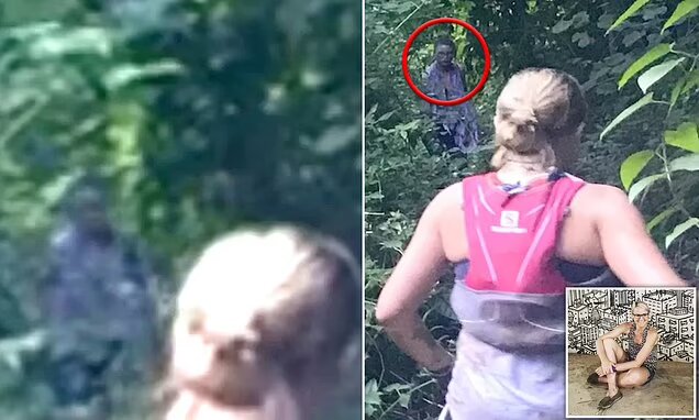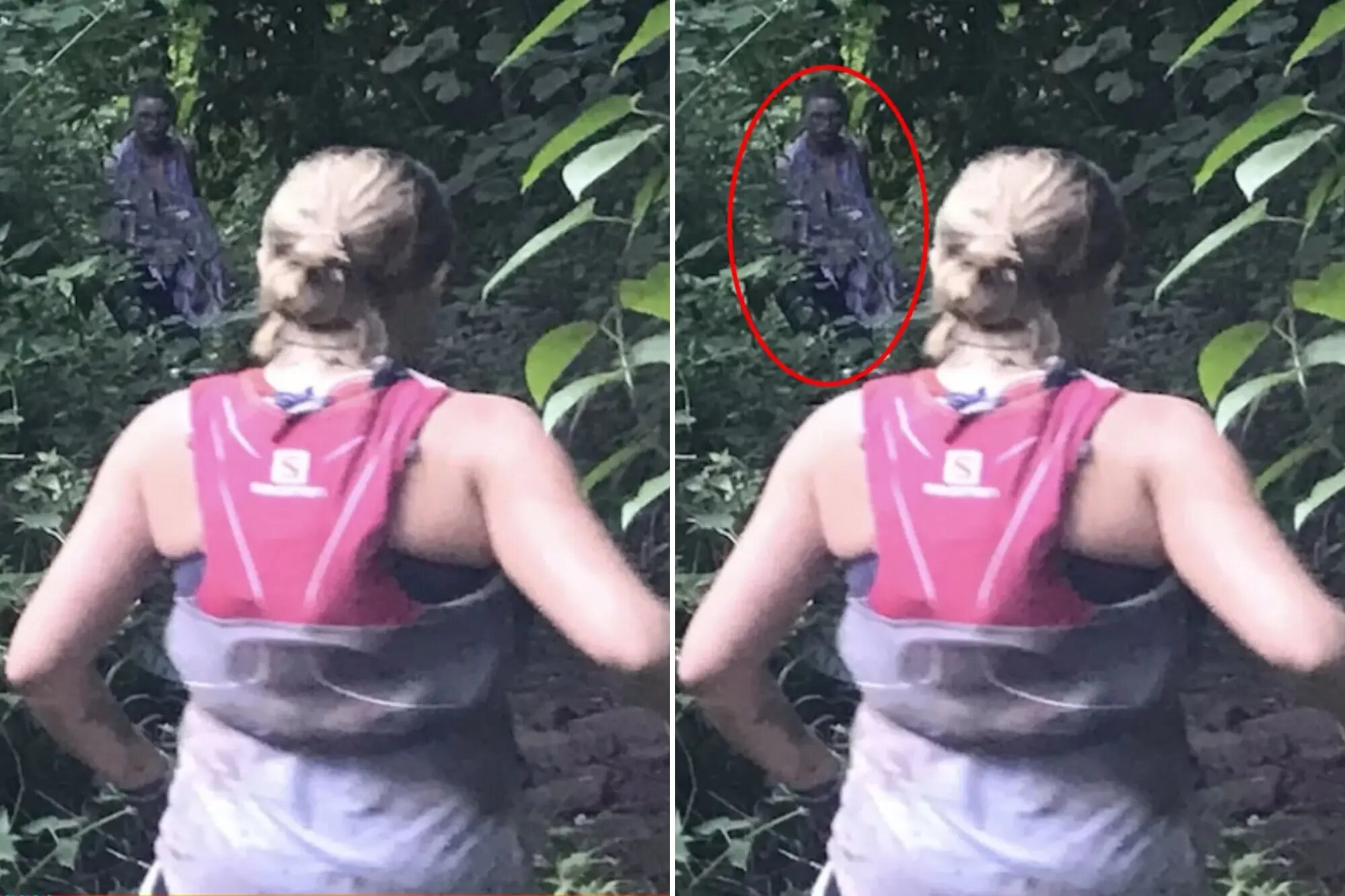 صورة مرعبة لعداءة تمر قرب شبح مقاتل بغابة مطيرة,