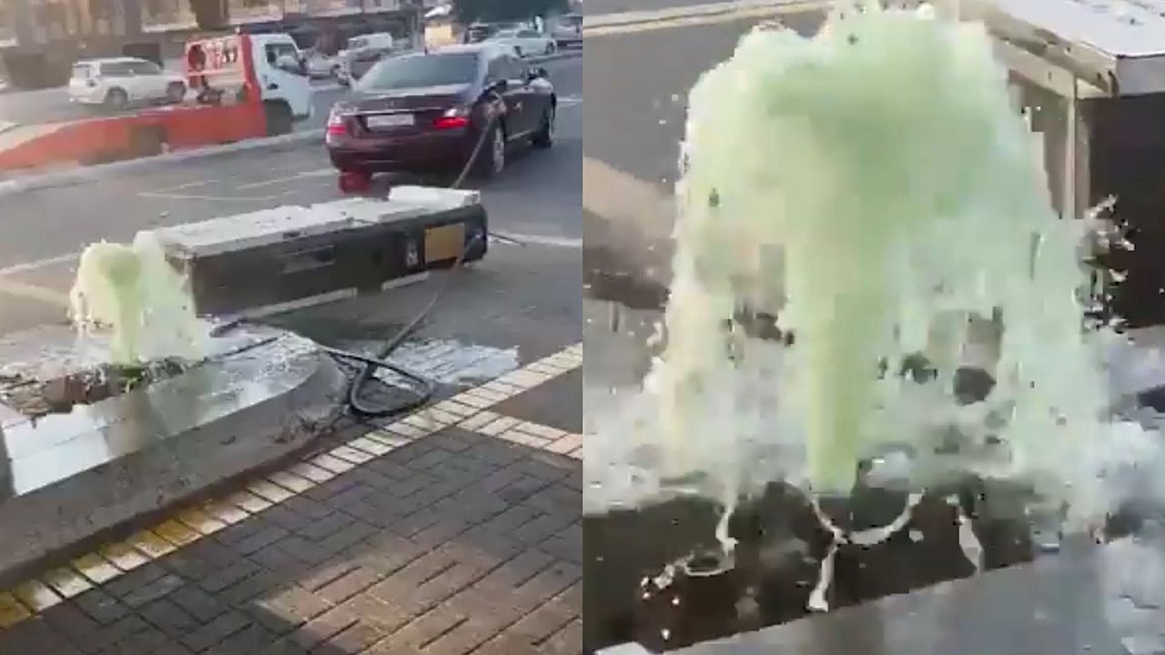 وأظهر المقطع السيارة وهي تبتعد عن المضخة، فيما يتدلى خرطوم الوقود من مؤخرتها. وسرعان ما سقط خزان الوقود على الأرض، وتدفق الوقود بكثافة على الأرض.