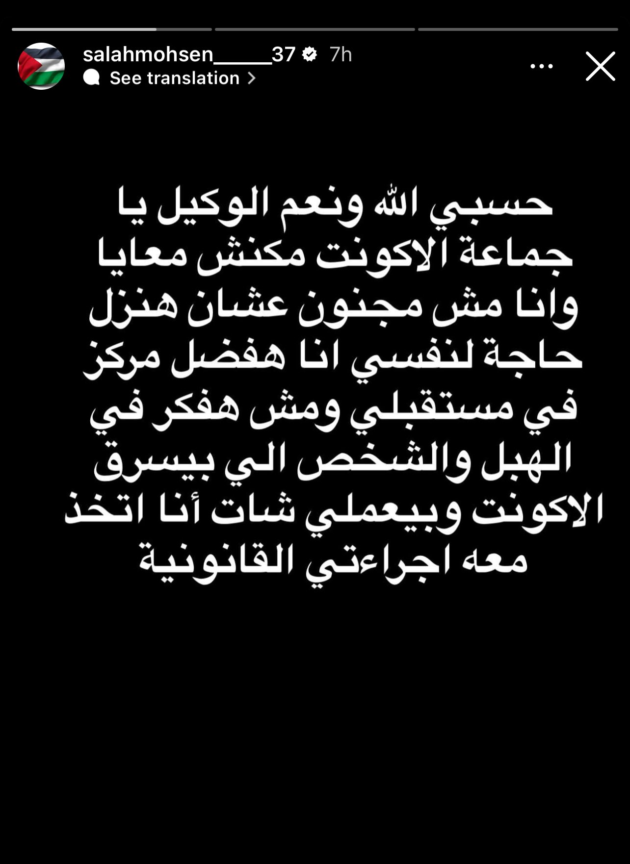 وعلق اللاعب المصري، عبر حسابه الرسمي على موقع التواصل الاجتماعي “إنستجرام”، على هذه الرسائل قائلا: “حسبي الله ونعم الوكيل يا جماعة. الحساب لم يكن معي.”