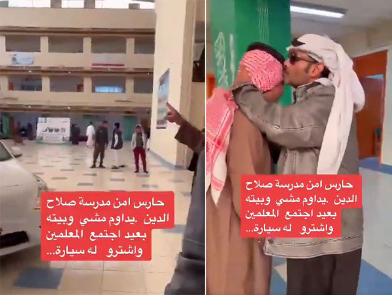 ووثق مقطع فيديو سعادة حارس الأمن عند رؤية السيارة الجديدة، حيث احتضنها فرحا، وأعرب عن شكره للمعلمين على هذه اللفتة الكريمة.