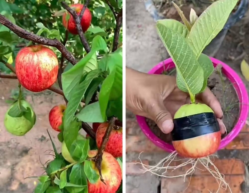 شاهد طريقة غريبة لإنتاج ثمار الجوافة والتفاح من نفس الشجرة,