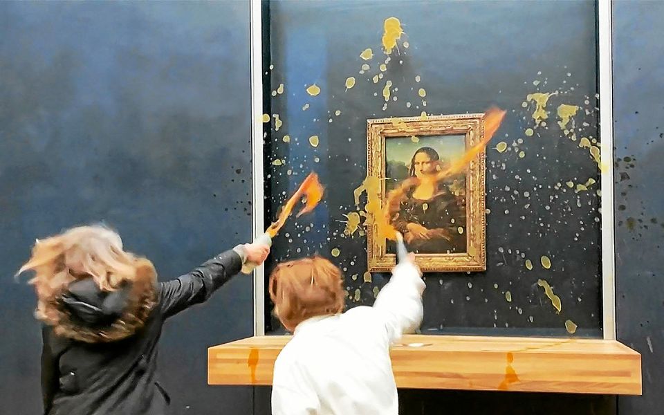 شاهد ناشطتان بيئيتان تلطخان لوحة الموناليزا في متحف اللوفر,