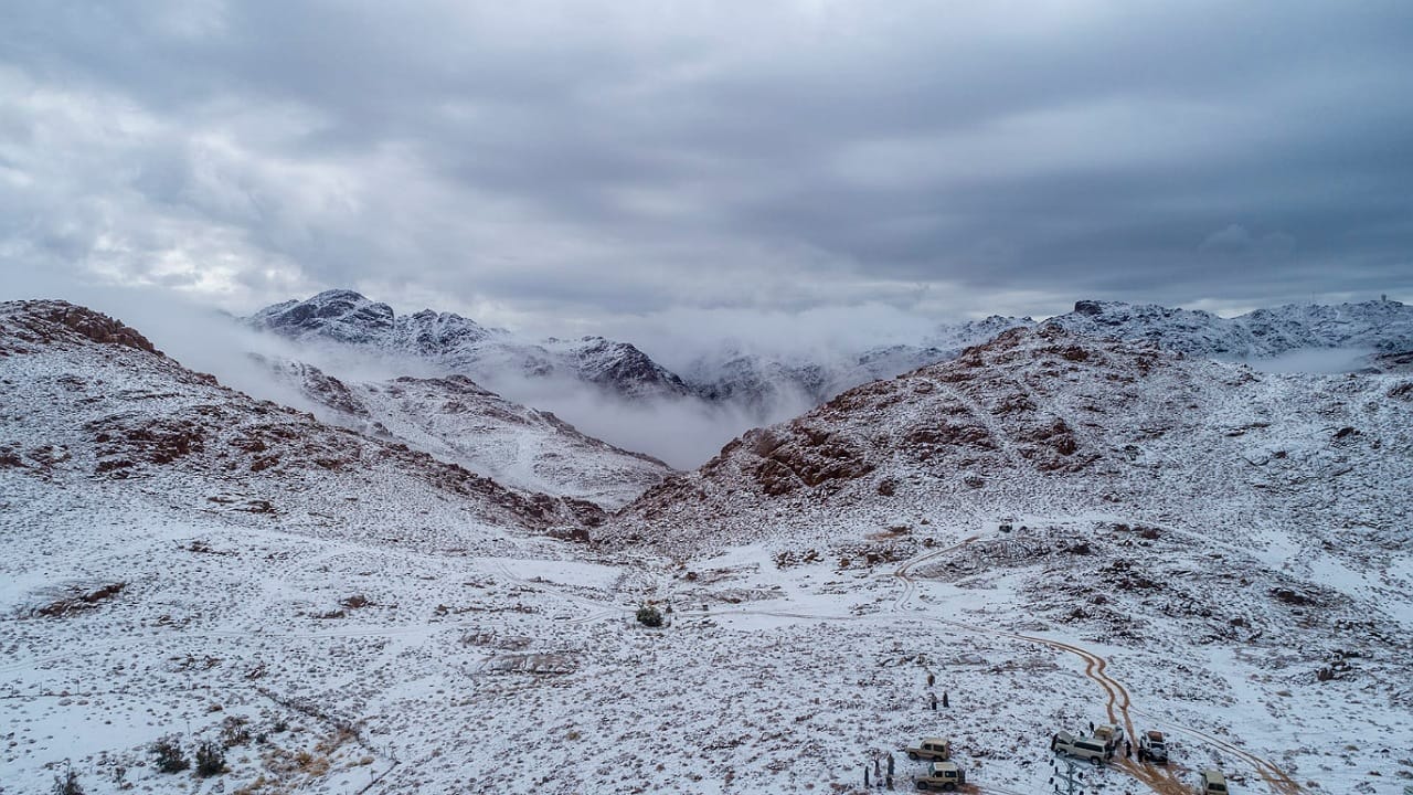 وكانت هيئة الأرصاد وحماية البيئة توقعت تساقط الثلوج على مرتفعات منطقة تبوك، مع انخفاض درجات الحرارة من الصفر المئوي إلى 3 تحت الصفر.