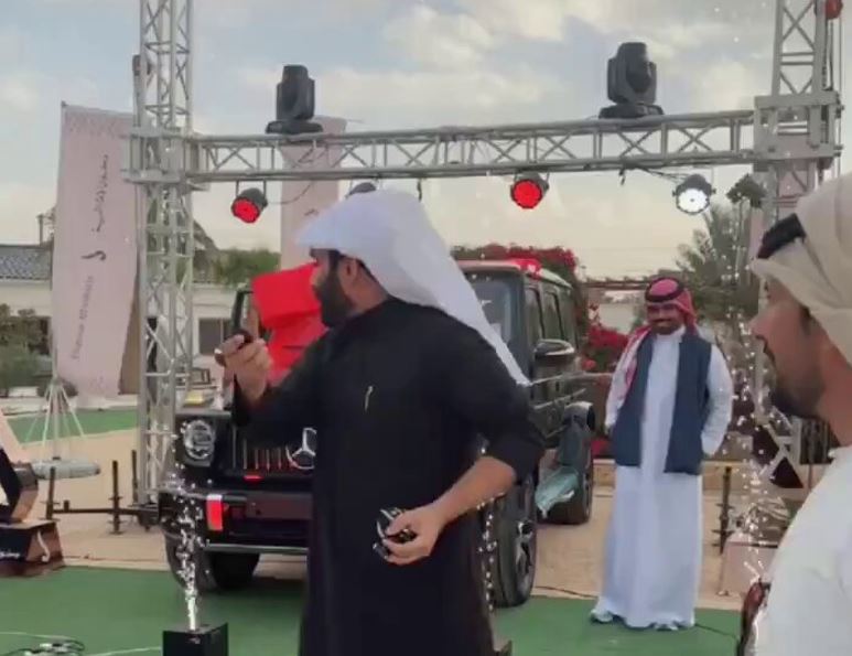 فيديو.. عبدالرحمن المطيري يوزع 8 مرسيدس جي كلاس كهدايا بدون شروط,