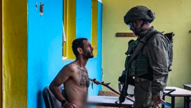 أثارت صورة نشرها جندي إسرائيلي على حسابيه في فيسبوك وإنستغرام لمعتقل فلسطيني في قطاع غزة، غضبا واسعا على مواقع التواصل الاجتماعي.