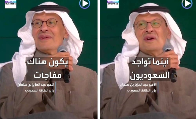 دار خلال فعاليات المؤتمر الدولي لتكنولوجيا البترول حوار بين أحد المستثمرين ووزير الطاقة الأمير عبد العزيز بن سلمان.