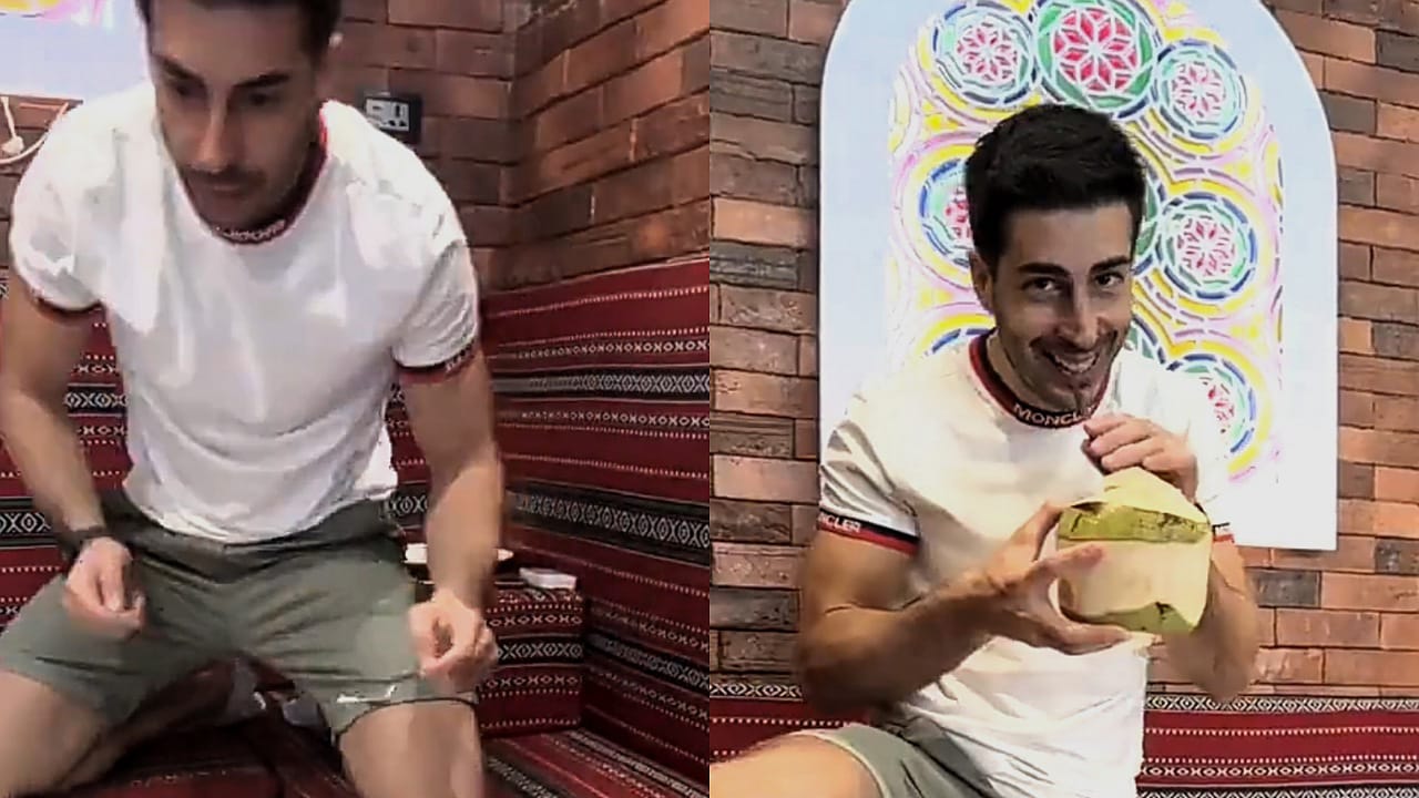 وفي مشهد طريف، ظهرت فتاة مع زوجها الإيطالي في مقطع فيديو، توثق محاولة زوجها الجلوس على الطريقة العربية.