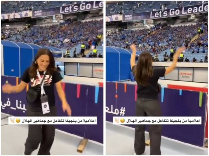 شاهد إعلامية بلجيكية تتفاعل مع أهازيج مشجعي نادي الهلال,