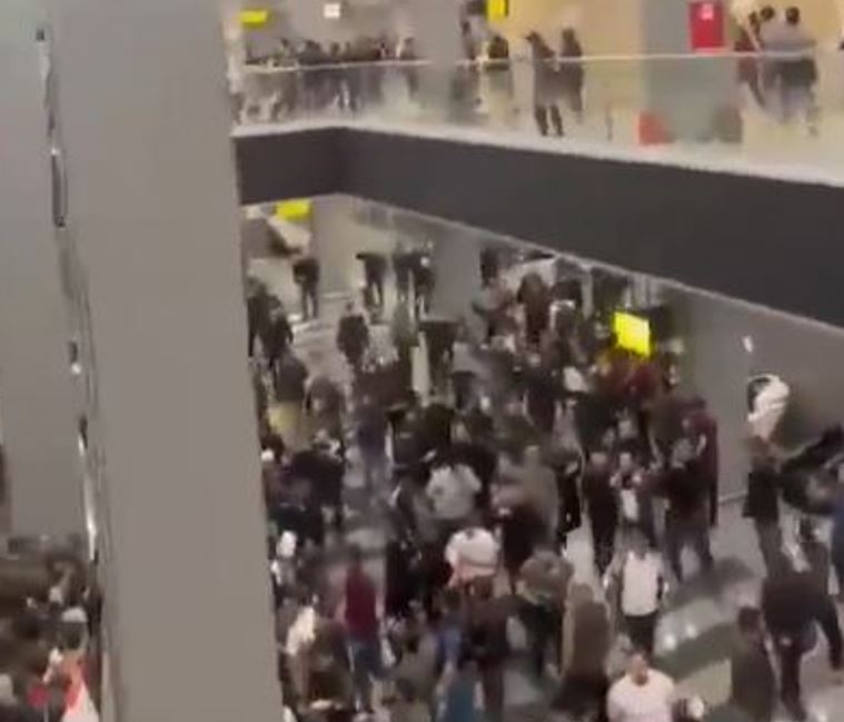 وأظهر مقطع فيديو متداول، عددا كبيرا من أنصار قضية غزة، وهم يقتحمون مبنى مطار محج قلعة الدولي في إقليم داغستان، بحثا عن يهود قادمين من رحلة جوية من تل أبيب.