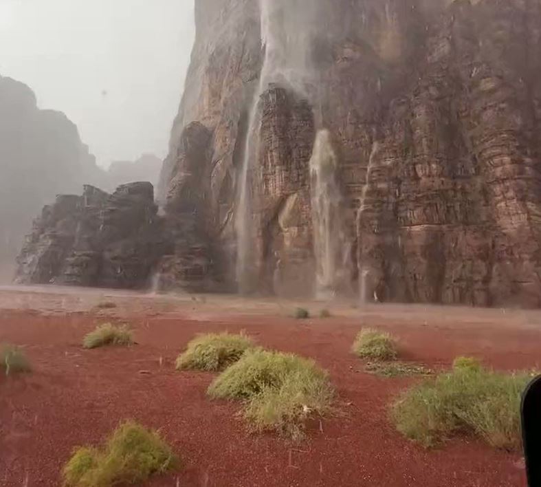 شهدت منطقة تبوك، اليوم، أمطاراً غزيرة ومتوسطة مصحوبة بتساقط البرد، شملت مدينة تبوك وضواحيها، ومحافظات تيماء وضباء وحقل والبدع. ونال مقطع الفيديو إعجاب العديد من مستخدمي مواقع التواصل الاجتماعي، الذين أبدوا إعجابهم بالمناظر الطبيعية الخلابة التي ظهرت في الفيديو. وأعلنت إدارة الدفاع المدني بمنطقة تبوك، عن فتح الطرق التي كانت مغلقة بسبب السيول، داعية المواطنين والمقيمين إلى توخي الحذر أثناء القيادة.