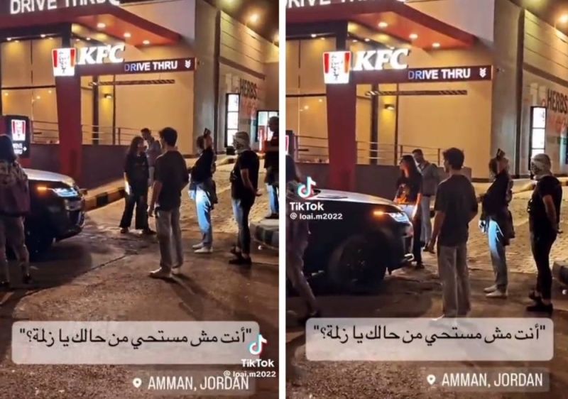 وثق مقطع فيديو متداول قيام مجموعة من الشبان الأردنيين بمنع سائق من دخول أحد مطاعم كنتاكي في عمان، وإجباره على المغادرة.