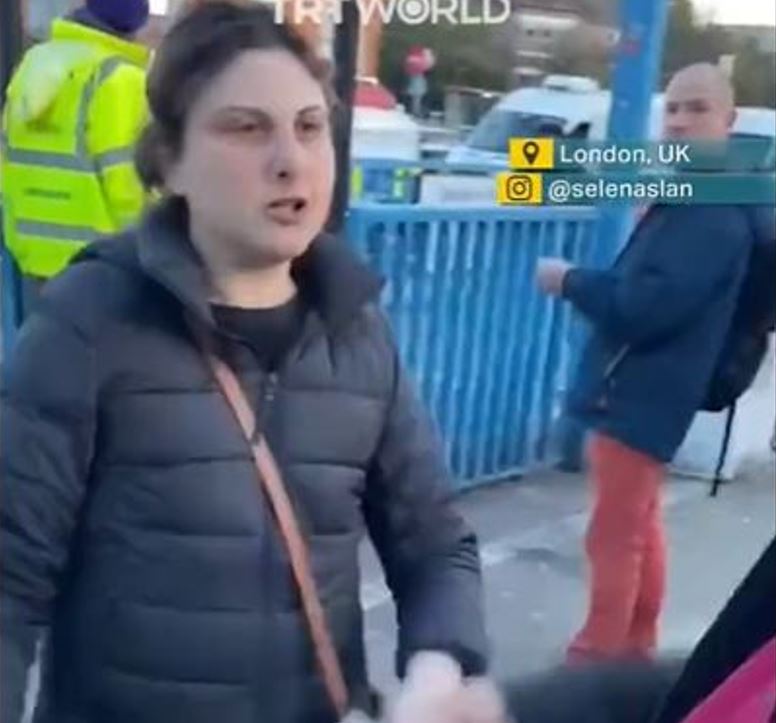 أظهر مقطع فيديو متداول على مواقع التواصل الاجتماعي، سيدة تهاجم أشخاصاً كانوا يوزعون منشورات دعماً لأهل قطاع غزة في العاصمة البريطانية لندن. وبحسب الفيديو، فإن مجموعة من الأشخاص كانوا يوزعون منشورات على المارة، عندما اقتربت منهم امرأة غاضبة وبدأت بالصراخ عليهم وتوجيه الشتائم إليهم.
