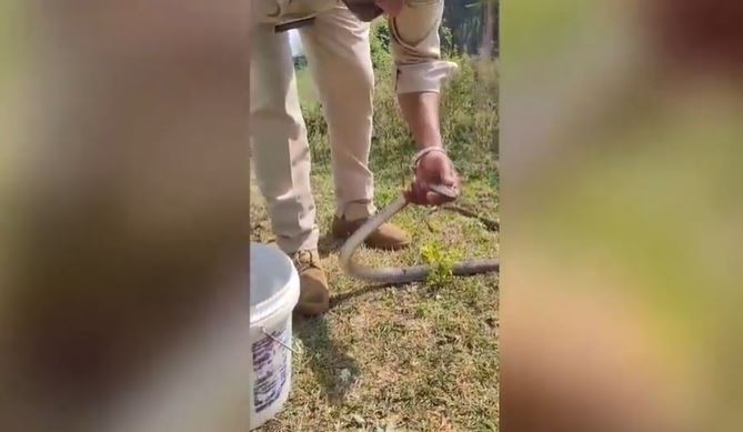 أظهر مقطع فيديو ضابطًا هنديًا يقوم بعملية الإنعاش القلبي الرئوي من الفم إلى الفم على ثعبان مسموم بالمبيدات الحشرية.