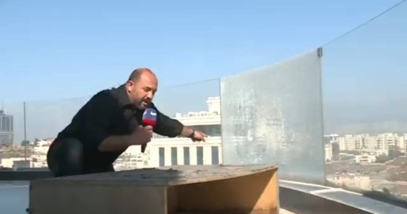 شاهد جيش الإحتلال الإسرائيلي يطلق النار على منطقة بث قناة العربية في رام الله,